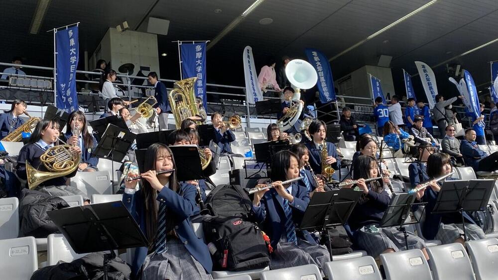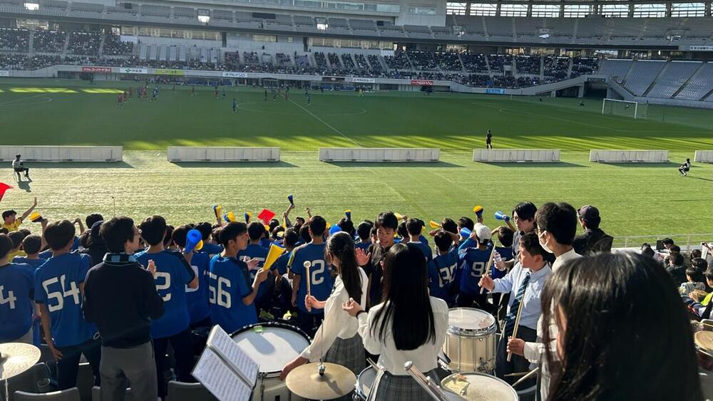 本校吹奏楽部は、姉妹校である多摩大学目黒高校サッカー部の応援をさせていただきました。