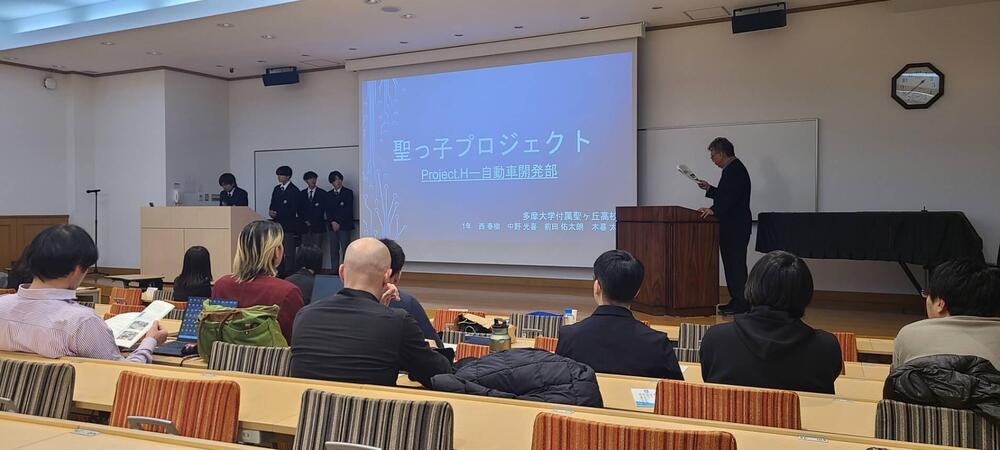 AL祭では本プロジェクトの構想を発表しました。まだまだ具体化されていない部分も多いですが、伝統文化と最新技術を掛け合わせ、新たな価値創造に取り組んでいる様子を大学で伝えることができました。生徒達は大学生や大学教授の質問にも堂々と受け答えし、また一つ自信をつける経験を積みました。