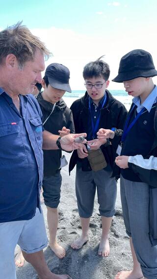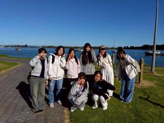 2026年3月4日 行事 中3NZ修学旅行⑤ トライデントチーム(9人)は火曜日に訪問先の先生から海辺のカフェでニュージーランドの国民食「Fish & Chips」をご馳走になり、その後はファカタネの浜辺を散策し、貝拾いなどこの国でしか出来ない体験をさせてもらいました。 また、水曜日はファカタネの町を探索し、この地区の自然も満喫しました。
