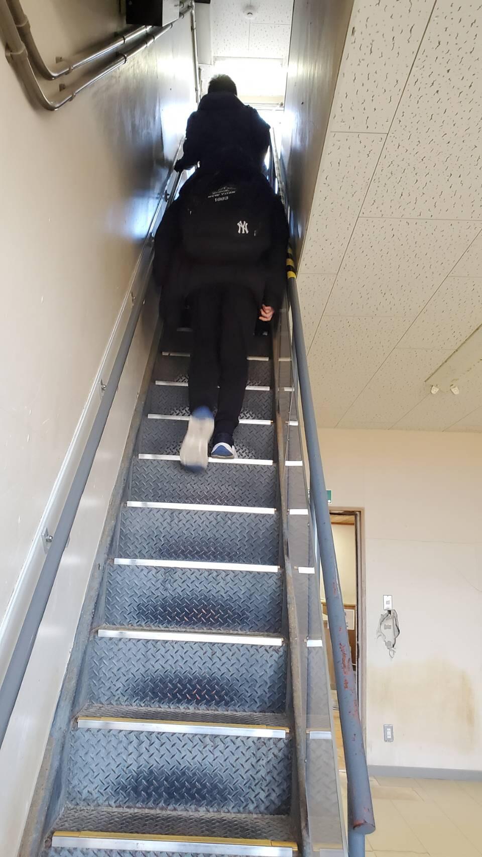 普段は使わない細い階段を子供たちは登って避難したそうです。