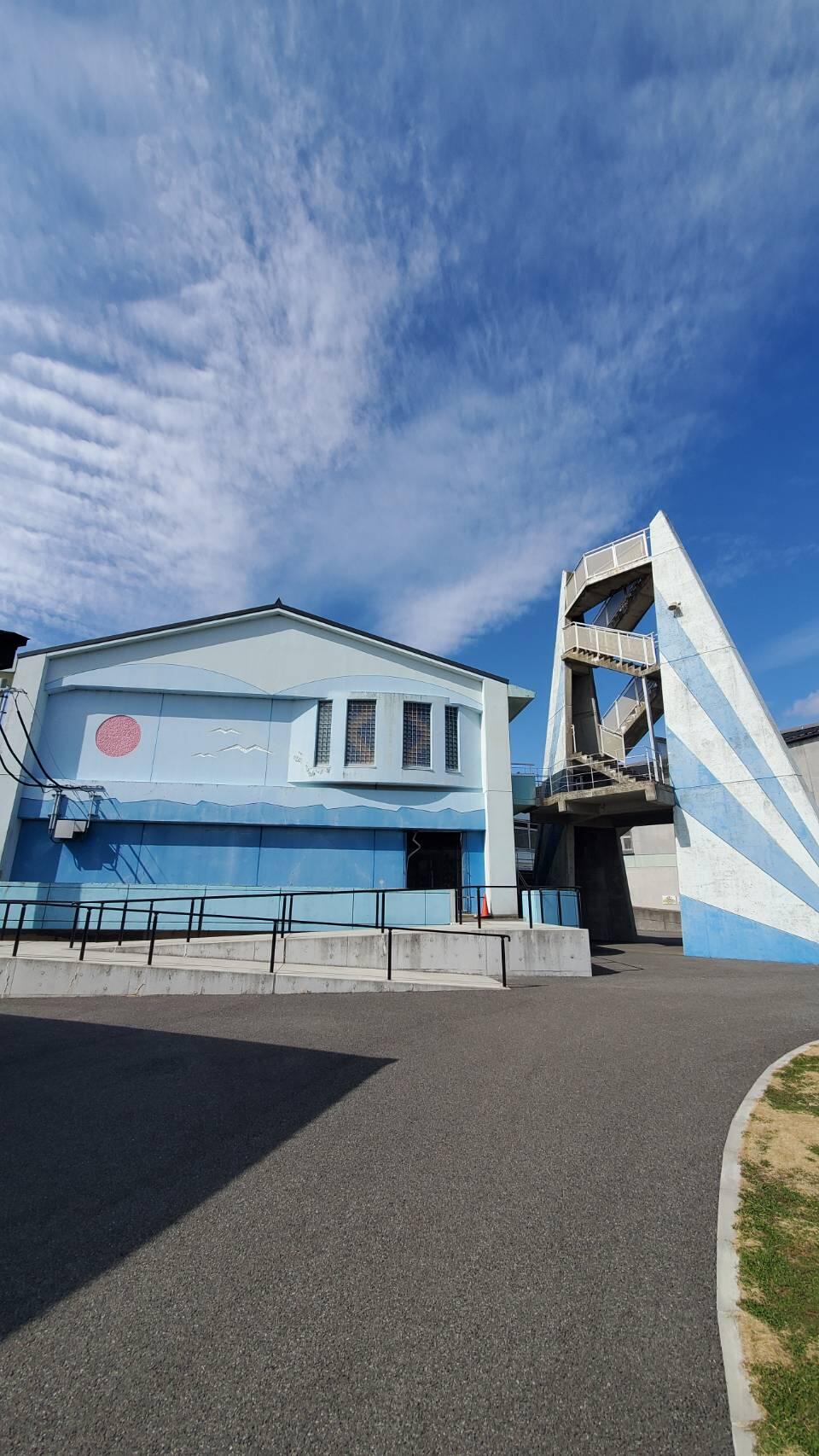 海に近い小学校は船のかたちを模していてきれいなブルーの校舎でした。
