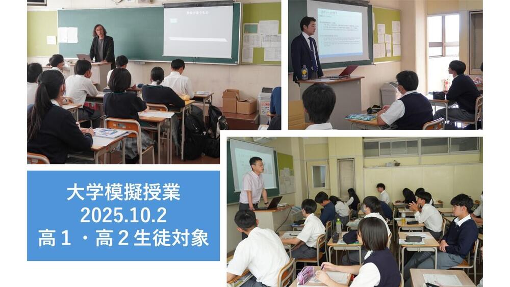 2025年10月2日 お知らせ 大学模擬授業 高1・高2の生徒を対象に、大学模擬授業が行われました。生徒たちは実際の大学の先生から、自分の関心のある分野の講義を受けることができ、大学の雰囲気を肌で感じる貴重な機会となりました。お越しいただいた先生方、ありがとうございました。