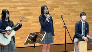 2025年11月5日 クラブ活動 軽音楽部の地域貢献! 今年度創部された軽音楽部が、11月2日に初めての学外公演を行いました。 今回は「多摩市・聖ヶ丘への地域貢献!」ということで、聖ヶ丘のコミュニティー施設である「ひじり館」の「ひじり館まつり」にアコースティック編成で参加しました。 中間考査後のタイトなスケジュールでしたが可能な限りの準備を行い、自分たちの演奏も会全体のMCも堂々と行うことができ、地域の方々も温かい声援をいただきました。 今後も学内外での公演活動を行いつつ、地域を盛り上げるイベントにも参加していきたいです!