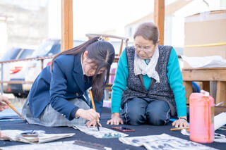 書初めや襖絵なども行い、大人から子供まで、多世代の交流がなされました。