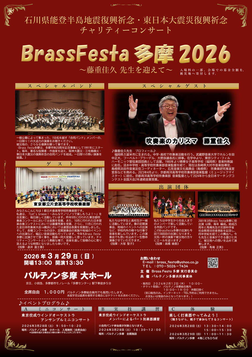 2026年3月29日(日)13:30開演 パルテノン多摩大ホールにて