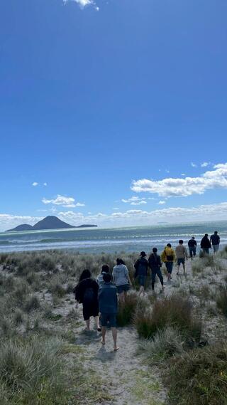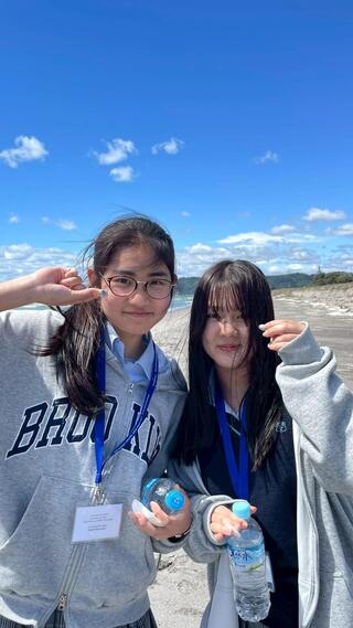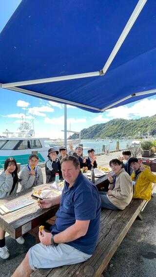 2026年3月4日 行事 中3NZ修学旅行⑤ トライデントチーム(9人)は火曜日に訪問先の先生から海辺のカフェでニュージーランドの国民食「Fish & Chips」をご馳走になり、その後はファカタネの浜辺を散策し、貝拾いなどこの国でしか出来ない体験をさせてもらいました。 また、水曜日はファカタネの町を探索し、この地区の自然も満喫しました。