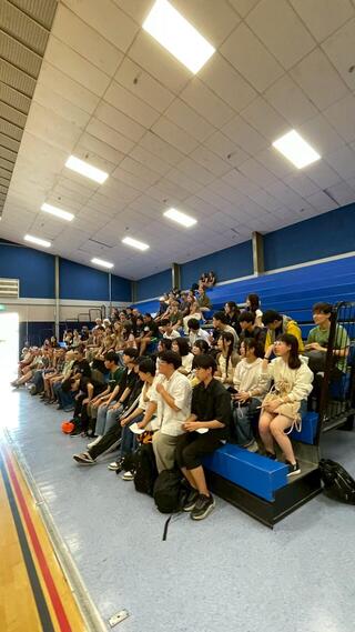 2026年3月8日 行事 中3NZ修学旅行⑪ 日曜日(3/8)トライデントハイスクールとファカタネハイスクールは合同でのフェアウェルパーティー(お別れ会)が行われました。全員に認定証が渡され、本校生徒からはお礼の出し物としてソーラン節や芸(皿回しなど)を披露しました。NZ修学旅行もあと数日ですが、最後まで英語で頑張ります。(数日前に行われたボルダリングの様子も載せてあります。)
