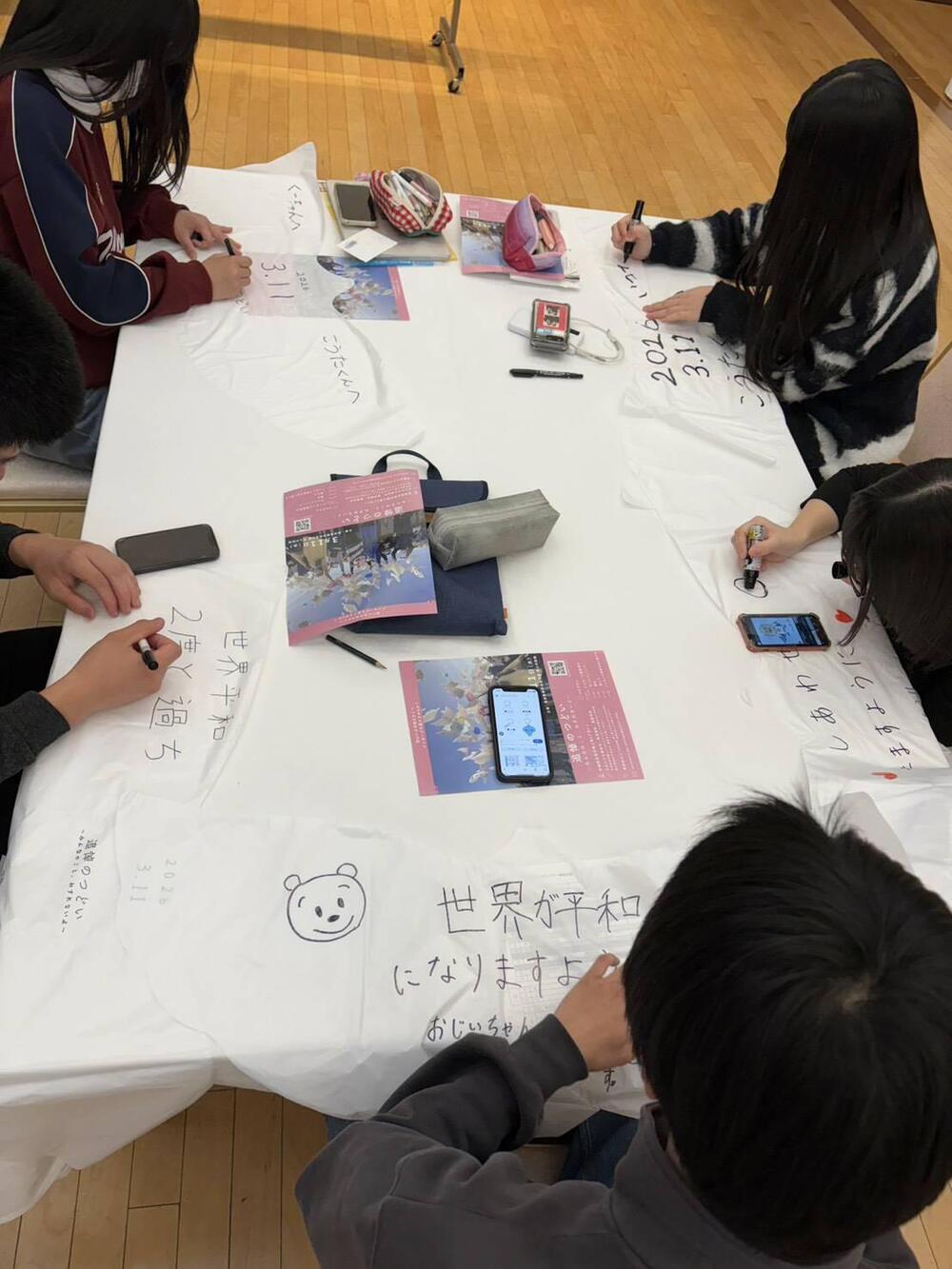 夜の勉強会のあと、閖上に送るはと風船のコメントを書きました。11日に空高く放たれます。